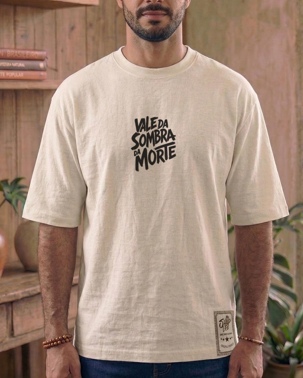 Mesmo sendo algodão penteado de alta qualidade, a fibra natural possui um encolhimento técnico de aproximadamente 5% após a primeira lavagem. Nossa modelagem Oversized já prevê esse ajuste para manter o caimento amplo.